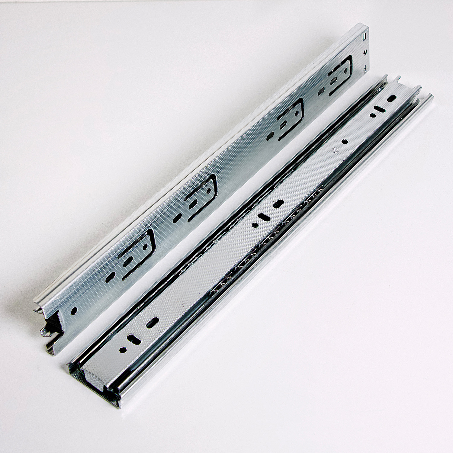 ریل ساچمه‌ای سه تیکه پهن یکی از پیشرفته‌ترین و بادوام‌ترین انواع ریل‌های کشویی است که در کابینت‌سازی، صنعت مبلمان و دکوراسیون داخلی مورد استفاده قرار می‌گیرد. این نوع ریل از سه قطعه اصلی تشکیل شده که درون یکدیگر حرکت می‌کنند و به‌واسطه ریل پهن‌تر و ساچمه‌های مقاوم، تحمل وزن بالاتری نسبت به ریل‌های دو تکه دارد. طراحی آن به گونه‌ای است که کشو به‌صورت کامل و روان از بدنه خارج شده و دسترسی کامل به محتویات فراهم می‌شود.